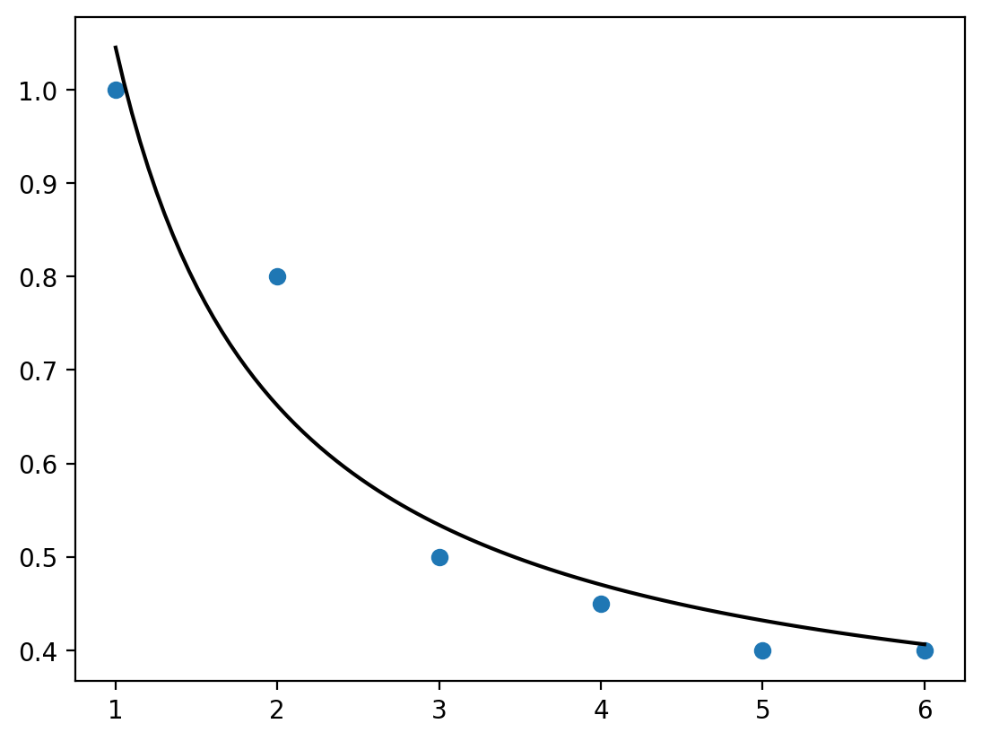 y = [1,0.8,0.5,0.45,0.4,0.4]